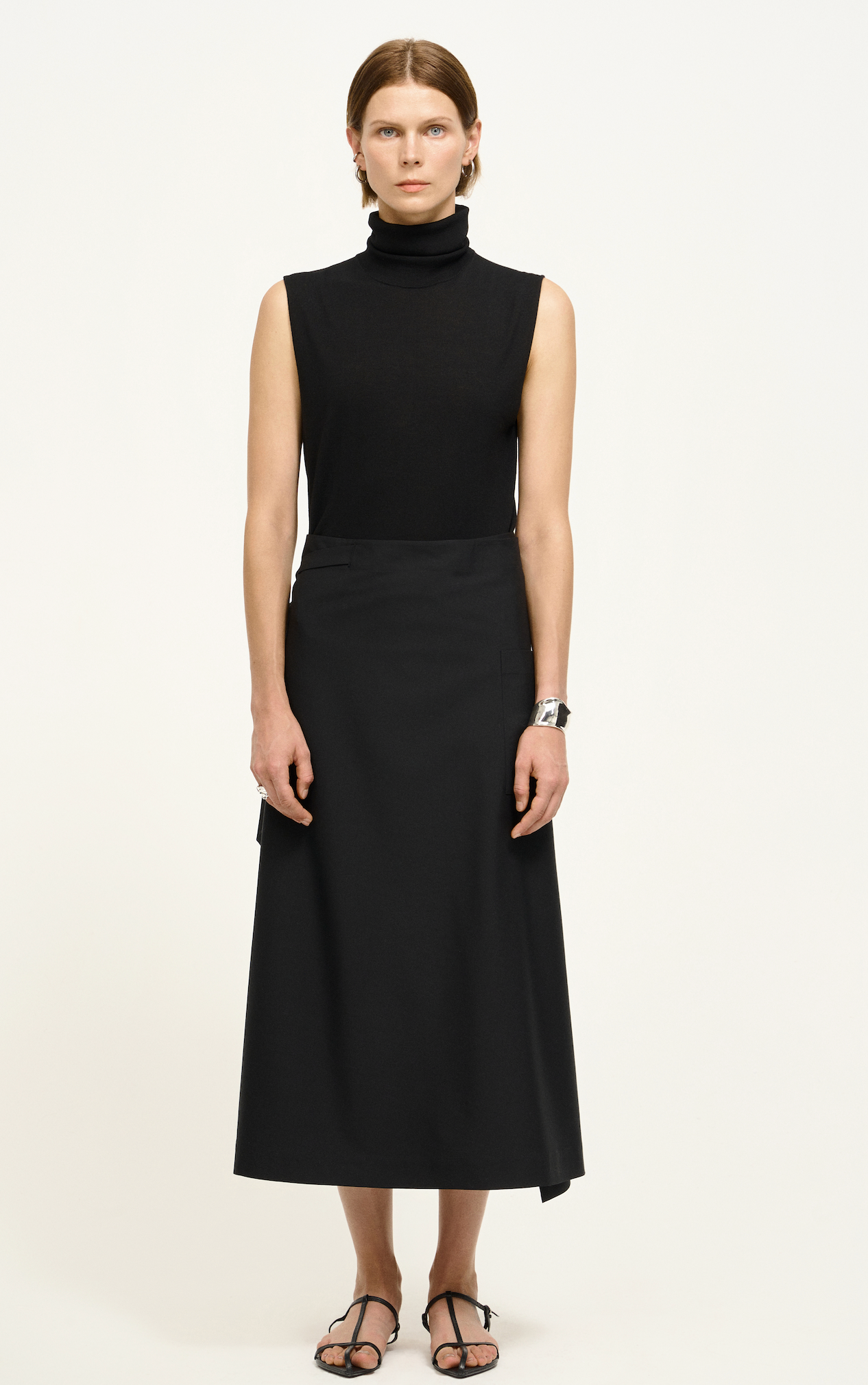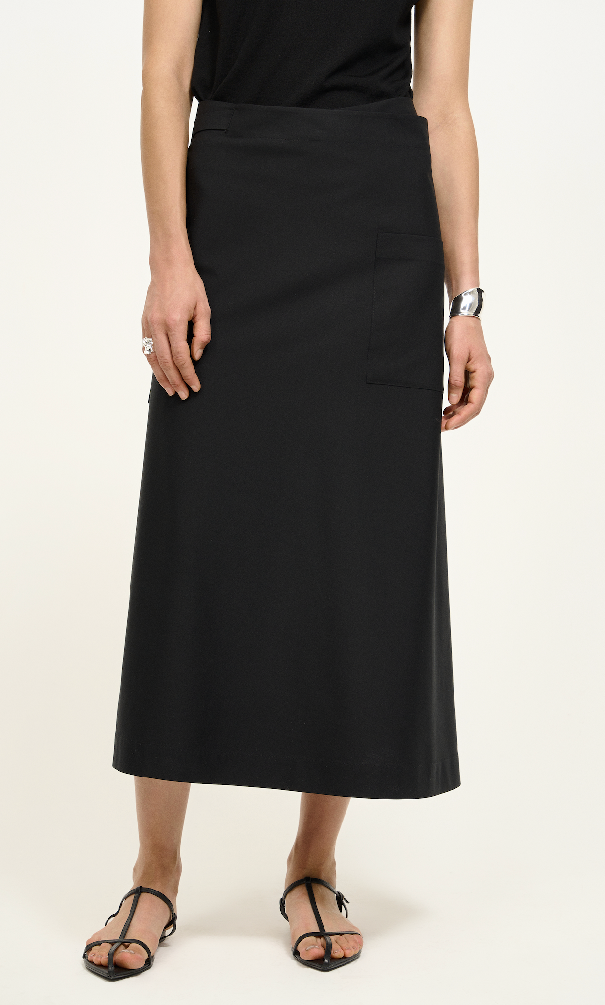 Wrap-Style Wool-Silk Midi Skirt